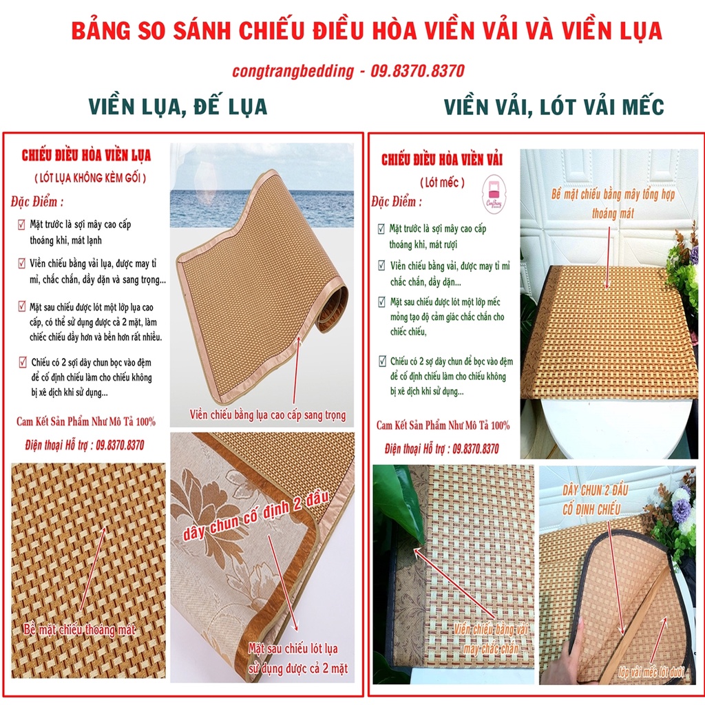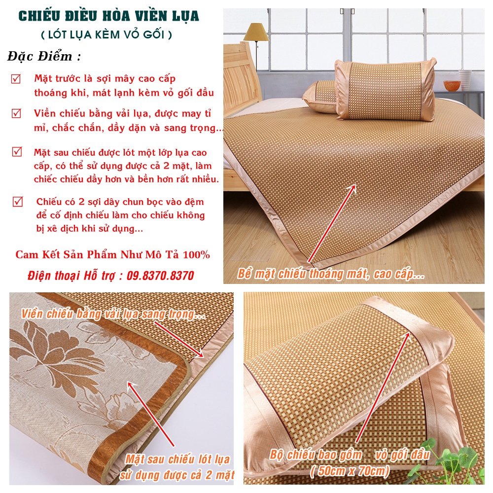 - Sự kết hợp hoàn hảo, tuyệt vời của chiếu điều hòa thường với chiếu tre tạo nên chiếc chiếu điều hòa tổng hợp loại dầy này, thừa hưởng sự mát mẻ của chiếu tre và sự gọn gàng của chiếu điều hòa.
