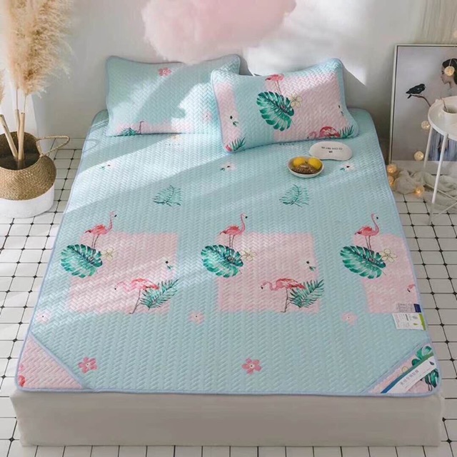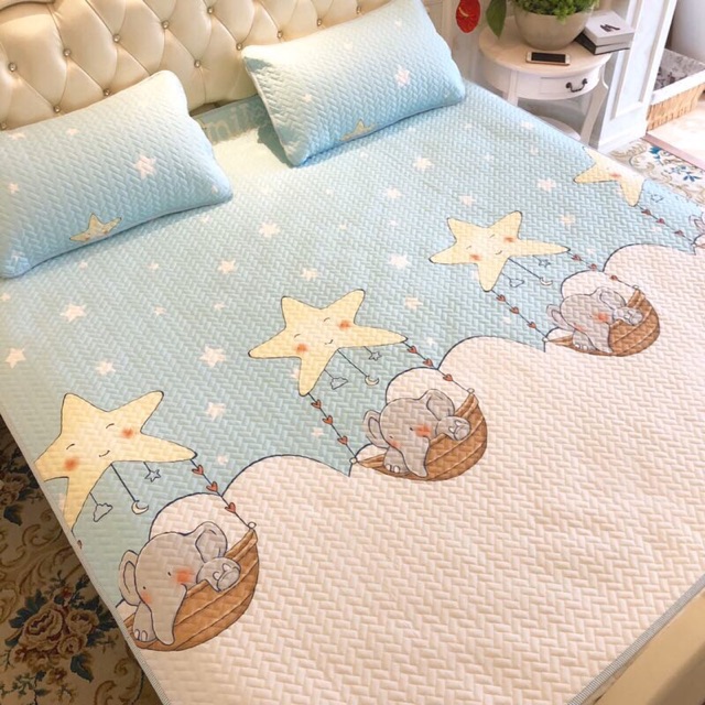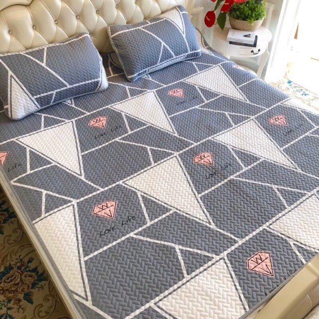 🍒Thiết kế hiện đại: mặt trên được làm bằng vải Tencel, mặt dưới là lớp chống trượt, góc có đai thun cố định để chiếu không bị xê dịch trên mặt đệm