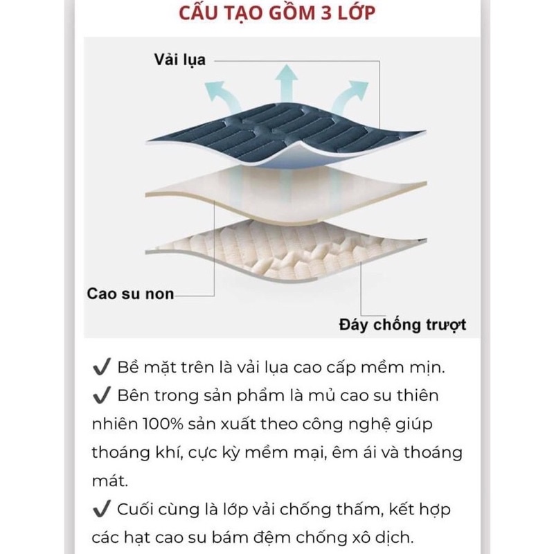 ✔ Cuối cùng là lớp vải chống thấm, kết hợp các hạt cao su bám đệm chống xô dịch
