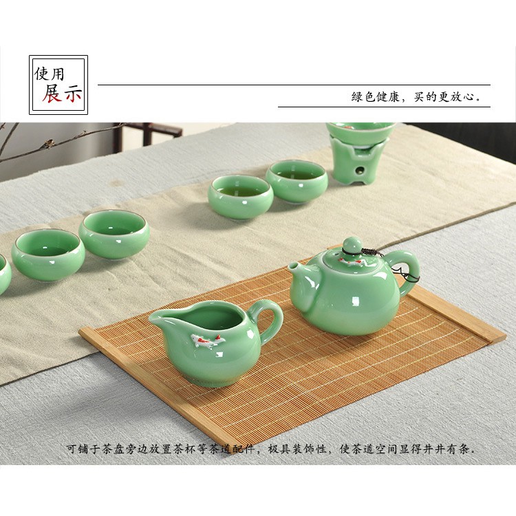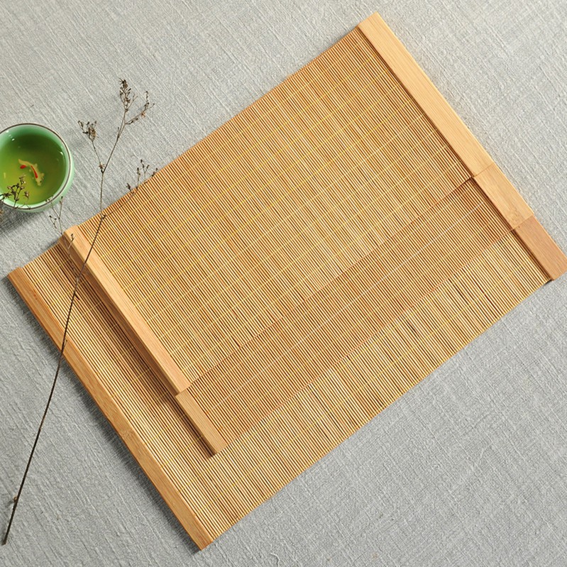 Chiếu trà bằng trúc bện bền-đẹp-rẻ. Dệt thủ côngKhoảng cách bện chỉ dày dặn, Mặt dưới là một lớp sợi, kết liền với chiếu, nên sử dụng cực kỳ bền. Hai đầu có nẹp trúc cứng cáp. Nhìn đã biết hàng chất như nước cất
