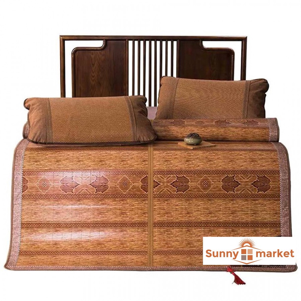 Giới thiệu Chiếu trúc tăm vân gỗ cao cấp in hoa gấp gọn 1m2 x 2m, Chiếu điều hòa nằm mùa hè mát lạnh, Chiếu trúc Tây Bắc