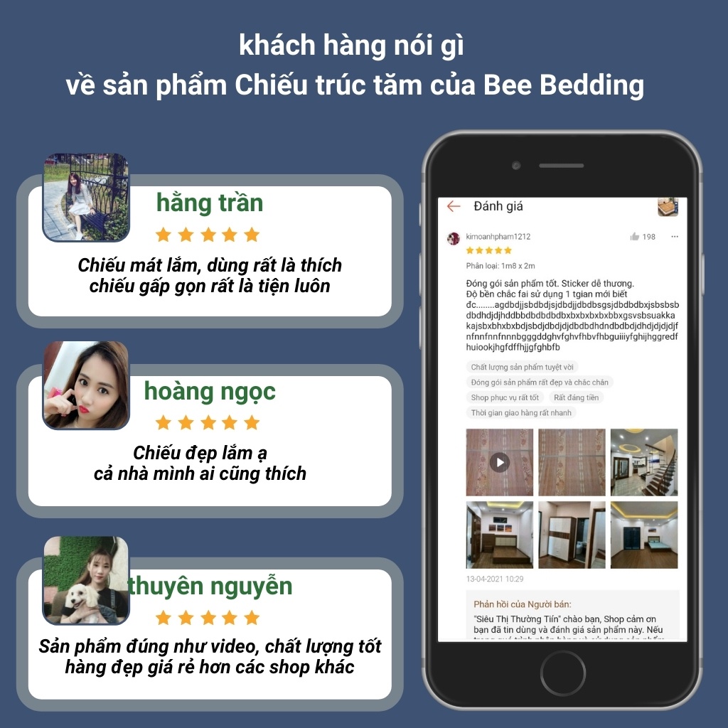 👉🏻 Các thanh tre vàng óng được gắn kết với nhau rất chắc chắn không có khe hở nên không sợ bị kẹp tóc, chiếu nằm siêu mát với độ bền cực cao.