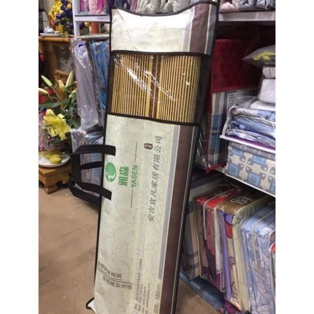 🍀Tên sản phẩm: Chiếu trúc tăm vân gỗ.🍀Chất liêu và đặc tính: Chiếu làm từ những cây tre già tự nhiên, mọc trên vùng núi đá vôi nên rất chắc, dẻo dai. Chúng được lựa chọn kỹ càng từ những cây tre già, to, chắc, thẳng đẹp. Thanh chiếu tre sau khi được chẻ, tuốt nhẵn theo kích thước đều nhau, được hấp sấy khô cẩn thận để tránh mối mọt và không hề sử dụng hóa chất nên rất an toàn cho người sử dụng. Chiếu được đan ghép bằng những sợi dây dù chắc chắn, viền chiếu đẹp, có độ bền cao.