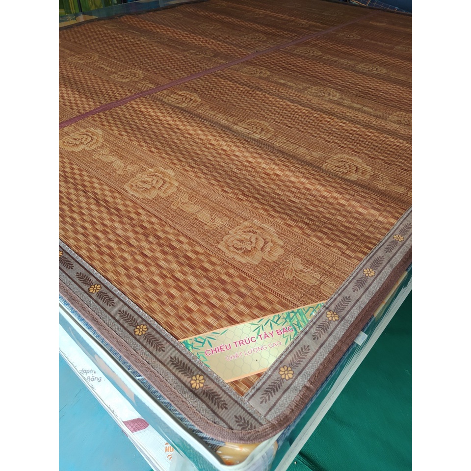 🍀Tên sản phẩm: Chiếu trúc tăm vân gỗ.🍀Chất liêu và đặc tính: Chiếu làm từ những cây tre già tự nhiên, mọc trên vùng núi đá vôi nên rất chắc, dẻo dai. Chúng được lựa chọn kỹ càng từ những cây tre già, to, chắc, thẳng đẹp. Thanh chiếu tre sau khi được chẻ, tuốt nhẵn theo kích thước đều nhau, được hấp sấy khô cẩn thận để tránh mối mọt và không hề sử dụng hóa chất nên rất an toàn cho người sử dụng. Chiếu được đan ghép bằng những sợi dây dù chắc chắn, viền chiếu đẹp, có độ bền cao.