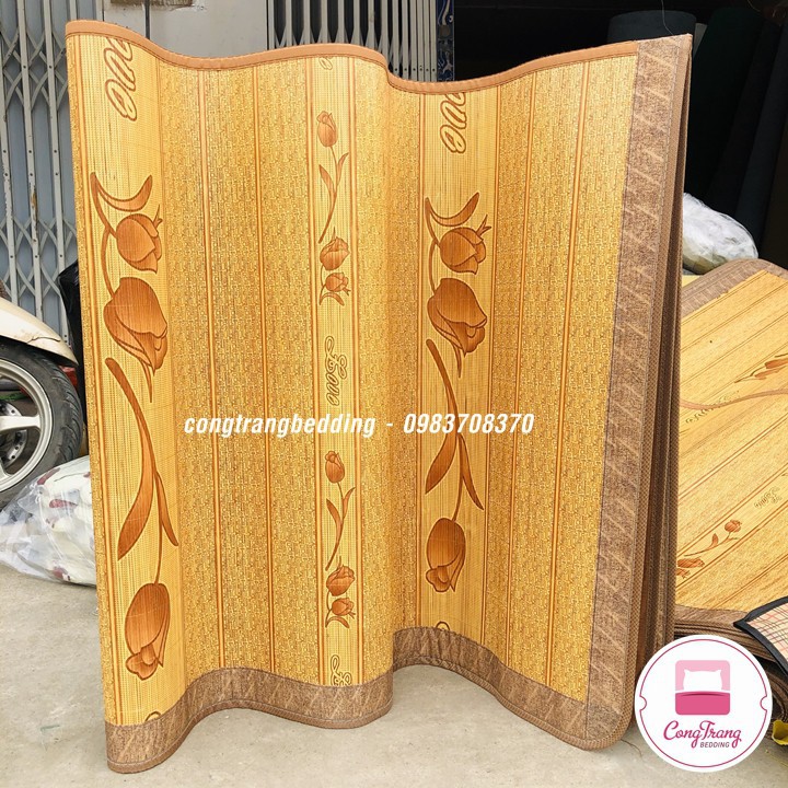 Chiếu cực đẹp nhé mọi người, Các thanh tre vàng óng được gắn kết với nhau rất chắc chắn không có khe hở nên không sợ bị kẹp tóc, chiếu nằm siêu mát với độ bền cực cao.