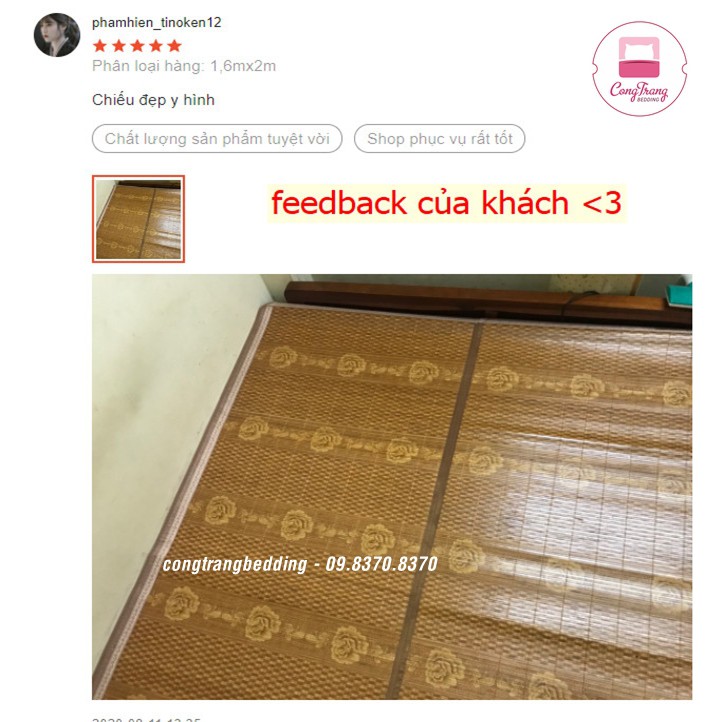 Nhà cửa & Đời sống > Chăn ga gối nệm > Chiếu điều hòa || Chiếu trúc vân gỗ HOMIES mặt sau lót lụa in hoa, loại dày đẹp cho mùa hè mát lạnh - nhiều kích thướcCòn hàng