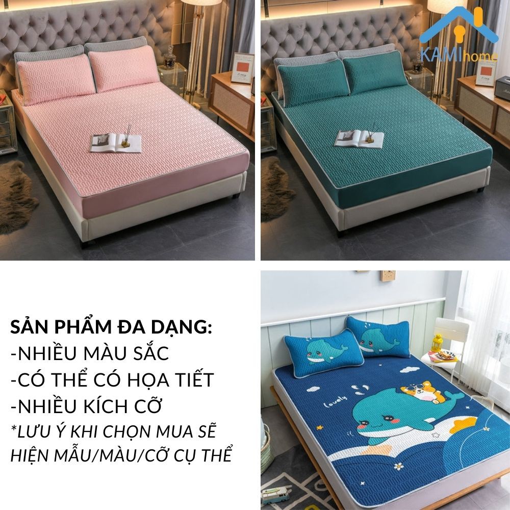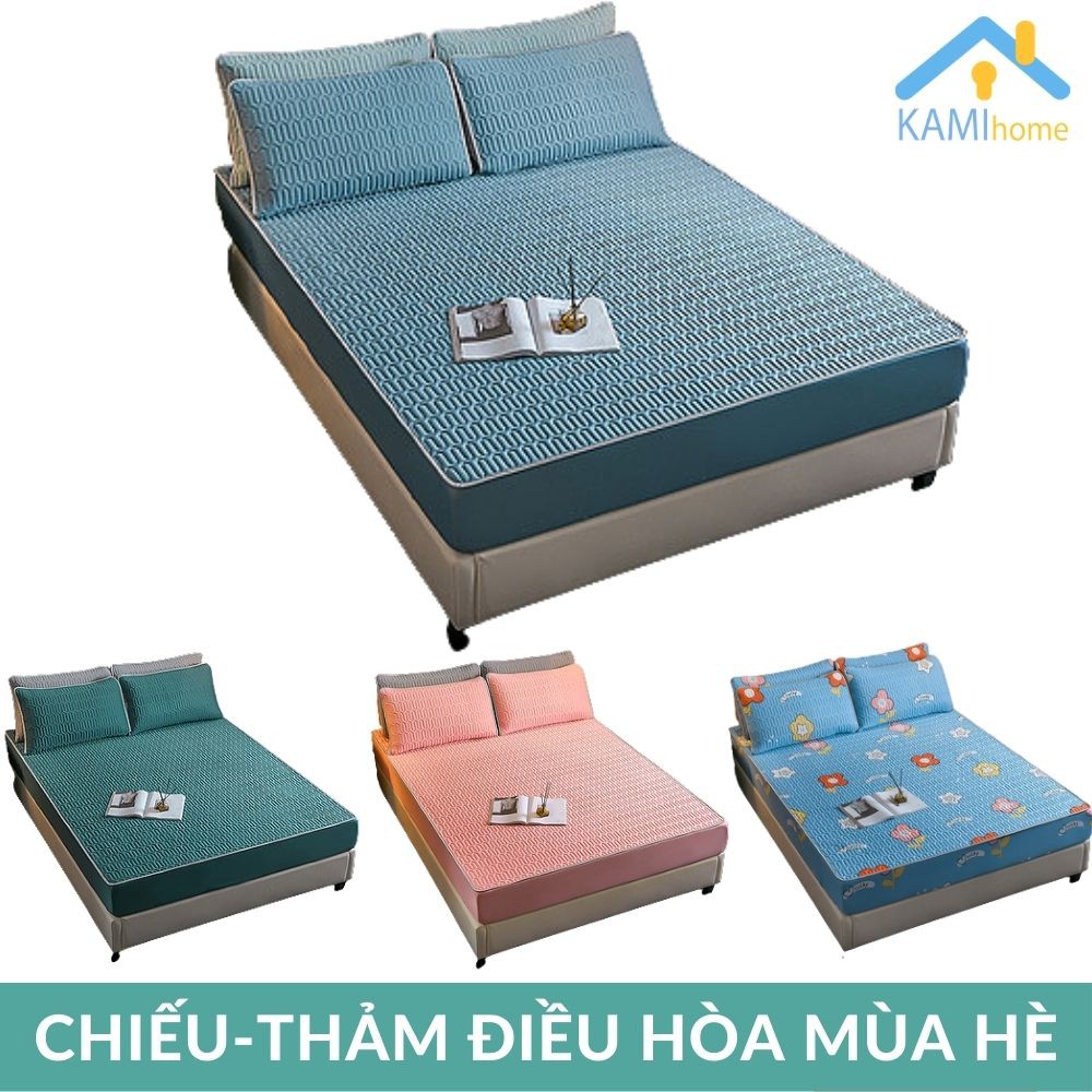 Chiếu vải điều hòa cao su non dùng cho mùa hè có kèm vỏ gối và chọn Cỡ 120-160-180cm hàng 3 lớp cao cấp