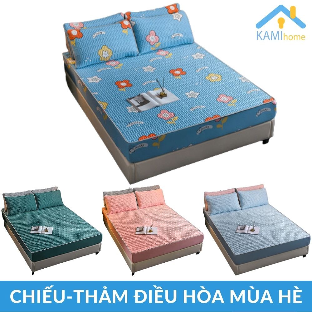 Chiếu vải điều hòa cao su non dùng cho mùa hè có kèm vỏ gối và chọn Cỡ 120-160-180cm hàng 3 lớp cao cấp Kami27017