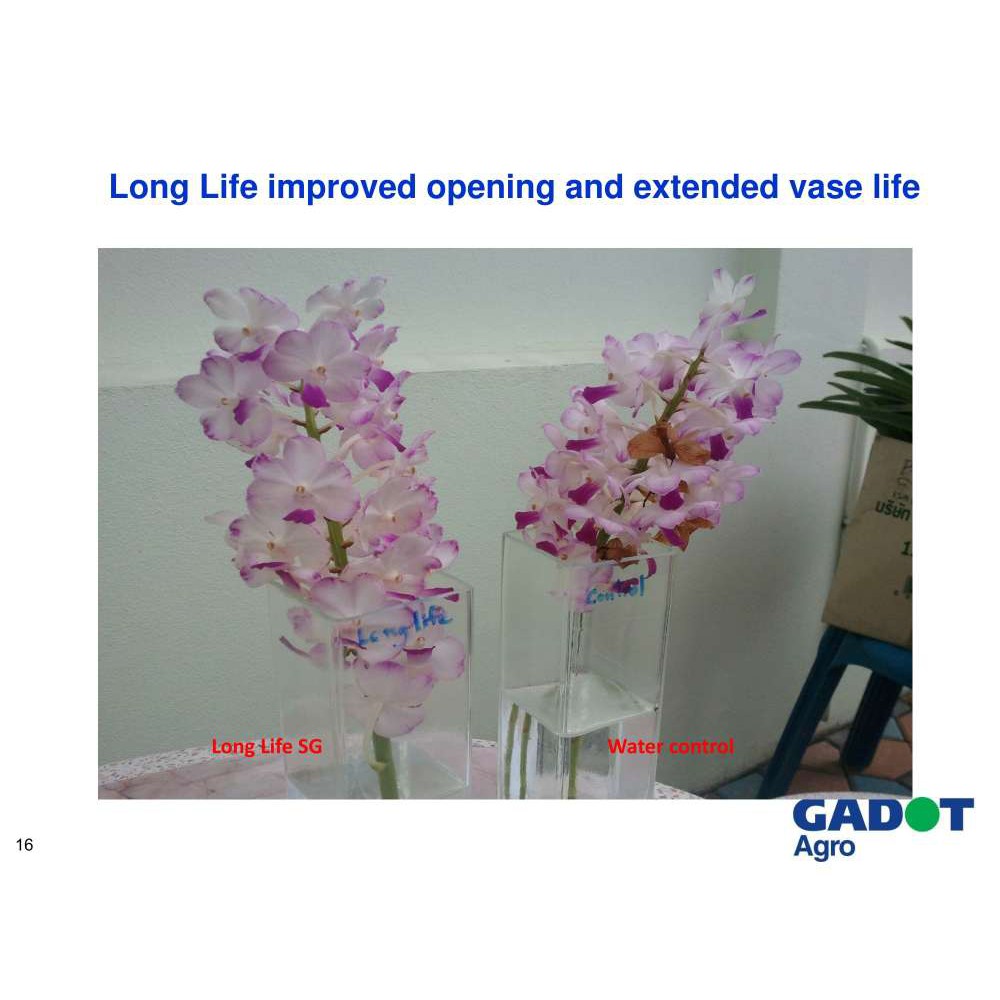 - Nâng cao chất lượng và kéo dài tuổi thọ của hoa tươi ở góc độ người tiêu dùng (từ 7 ngày đến 14 ngày tùy theo loại hoa và tùy theo quy trình xử lý trước khi sử dụng Long Life Israel)