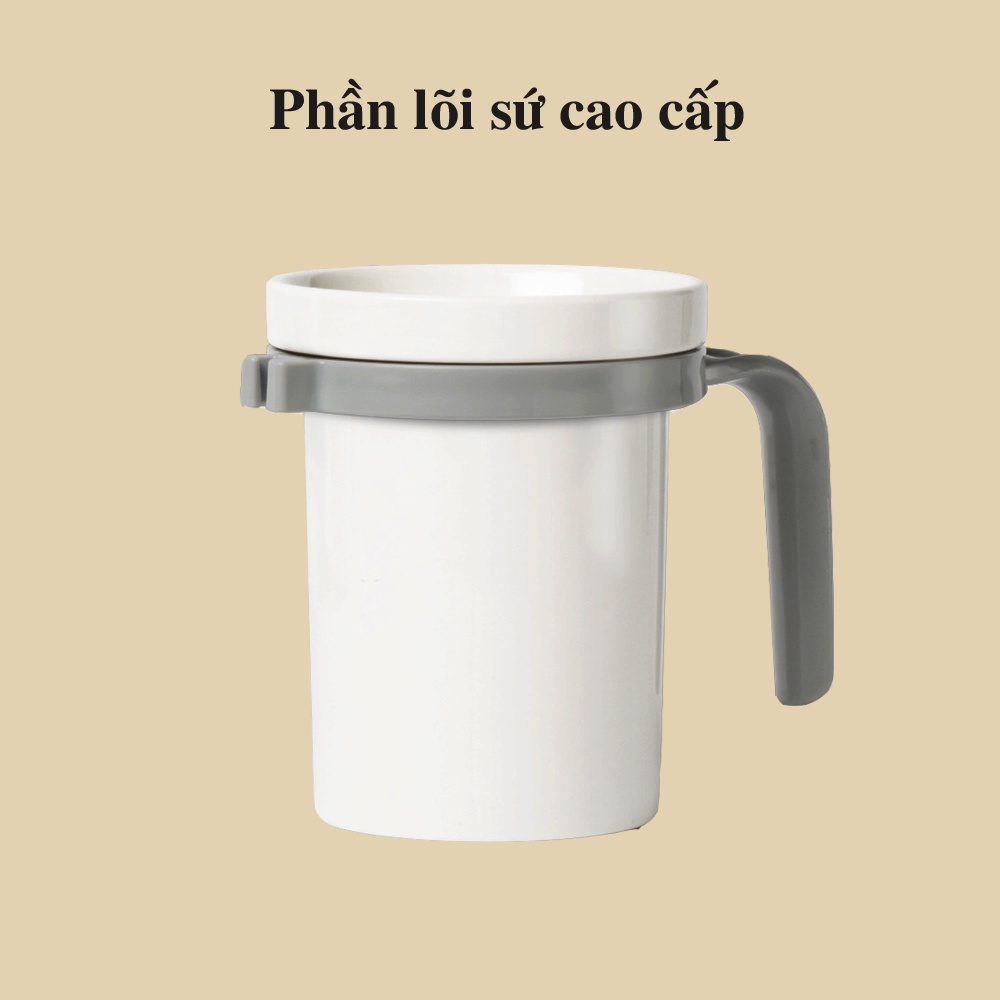 - Phần lõi cốc bằng sứ có tay cầm cách nhiệt