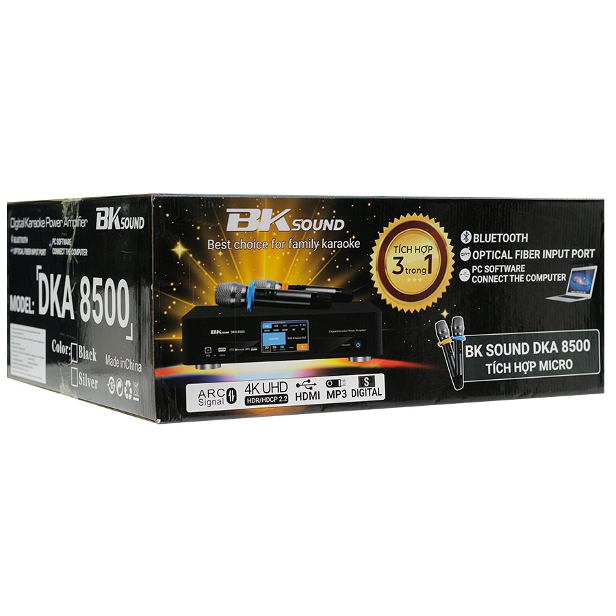 - Amply BKSound DKA 8500 sản phẩm kết hợp giữa cục đẩy, vang số và micro, sử dụng hát karaoke, nghe nhạc, xem phim