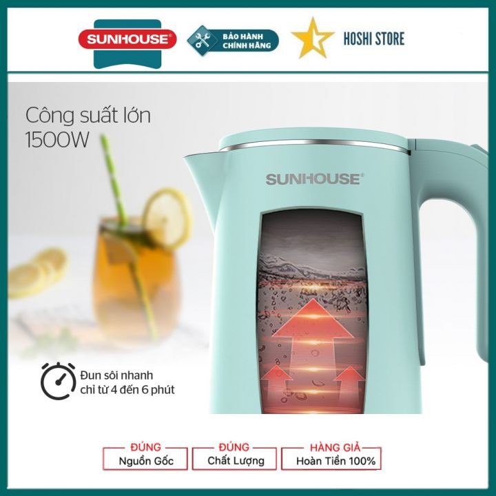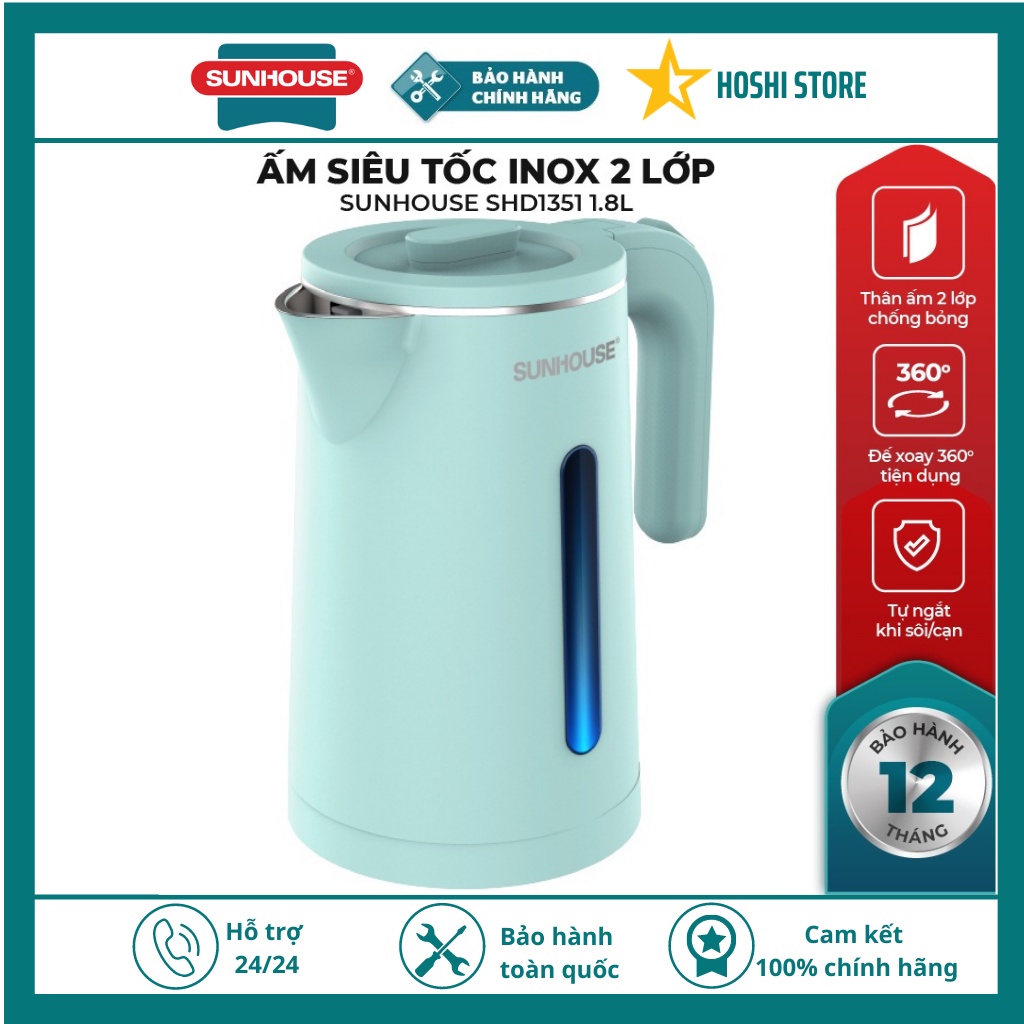 Thiết Bị Điện Gia Dụng > Đồ gia dụng nhà bếp > Ấm đun siêu tốc || {CHÍNH HÃNG BH 12 THÁNG} ẤM SIÊU TỐC. BÌNH ĐUN SIÊU TỐC CAO CẤP INOX 2 LỚP 1.8L SUNHOUSE SHD1351Còn hàng