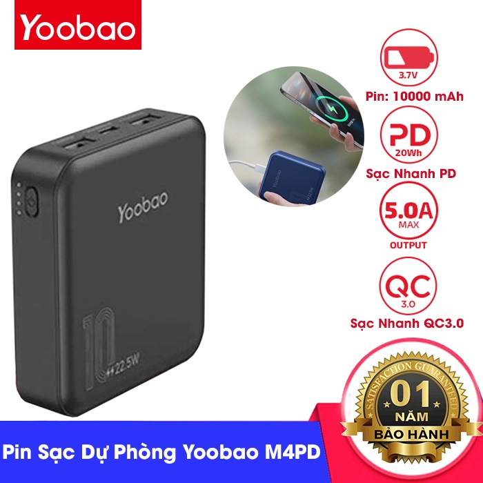 Điện Thoại & Phụ Kiện > Phụ kiện > Sạc dự phòng & Pin > Sạc dự phòng || [CHÍNH HÃNG-BH 12 THÁNG] Pin sạc dự phòng Yoobao M4PD 10000mAh, sạc nhanh 20W, QC3.0 - Hàng chính hãng YoobaoCòn hàng
