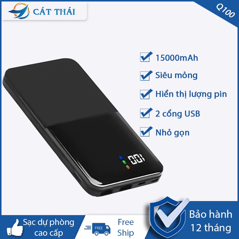 Điện Thoại & Phụ Kiện > Phụ kiện > Sạc dự phòng & Pin > Sạc dự phòng || [CHÍNH HÃNG BH 12 THÁNG] Pin sạc dự phòng CÁT THÁI Q100 Polymer 15000mAh mỏng nhỏ gọn cao quí 2 cổng sạc vàoCòn hàng