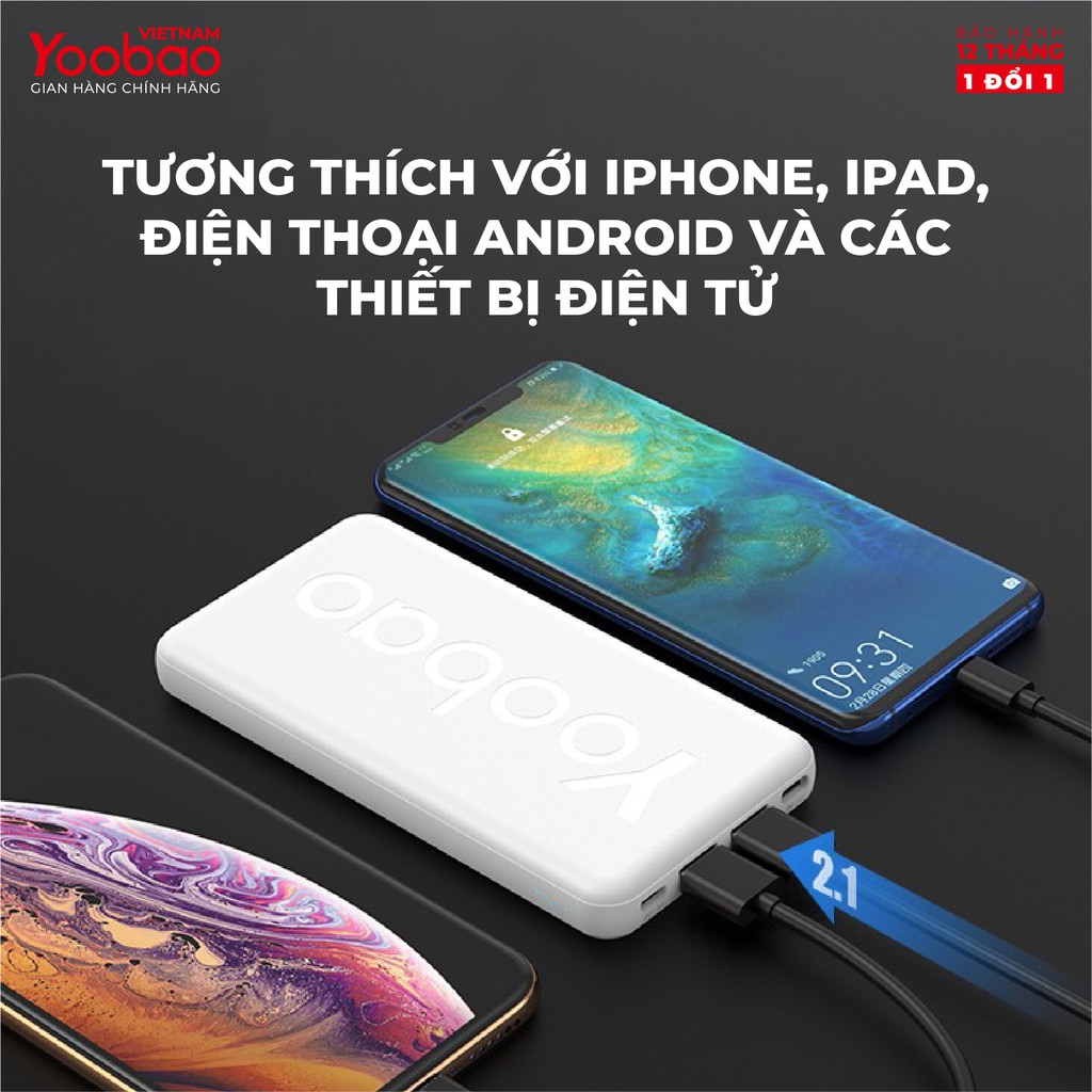 [CHÍNH HÃNG-BH 12 THÁNG] Sạc dự phòng 10000mAh Yoobao P10T Sạc nhanh 2.1A - Hàng phân phối chính hãng