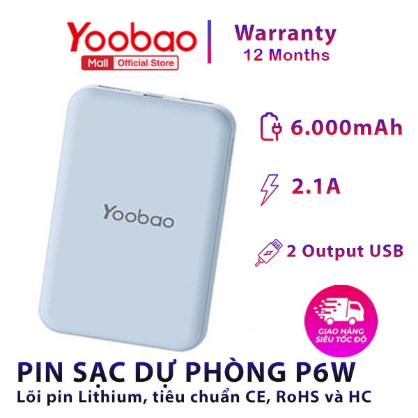 [CHÍNH HÃNG-BH 12 THÁNG] Sạc dự phòng mini 6000mAh Yoobao P6W - Hàng phân phối chính hãng - Bảo hành 12 tháng 1 đổi 1