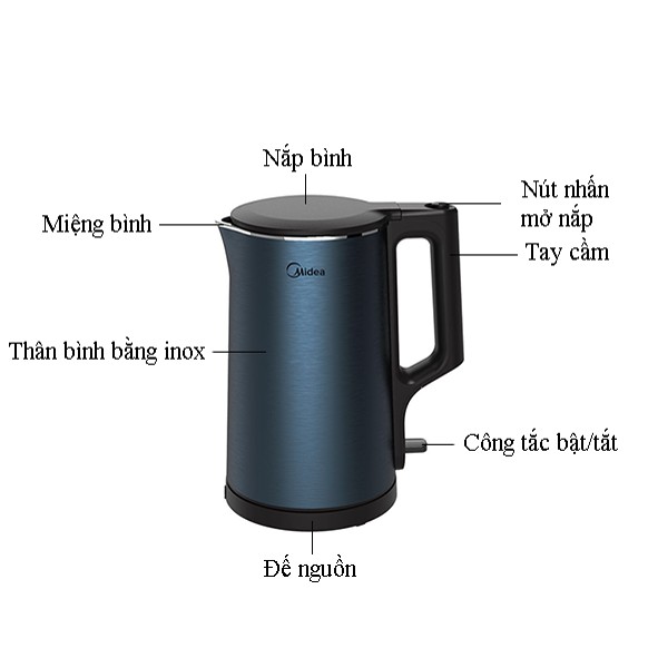[CHÍNH HÃNG] Bình ấm đun 2 lớp chống bỏng siêu tốc Midea MK-317DC, bảo hành 12 tháng ,lỗi đổi mới trong 7 ngày