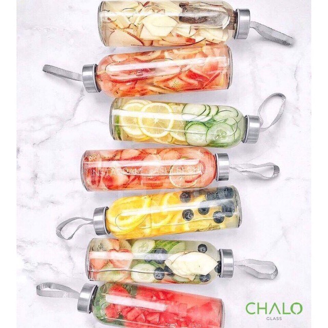 Bình nước thủy tinh, chai detox 300ml, 500ml nhỏ gọn, xinh xẻo, nhân tiện thể dụng cho bạn chứa đồ uống hằng ngày. Chất liệu thủy tinh cao cấp dày dặn, bóng bẩy, an toàn cho sức khỏe.