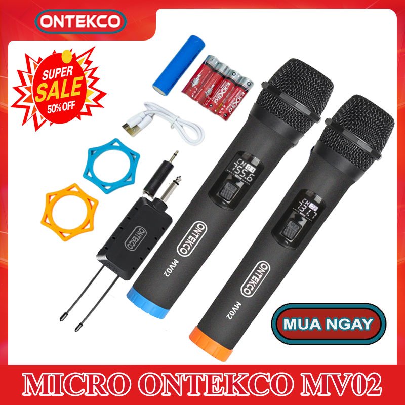[CHÍNH HÃNG] Bộ 02 Micro hát karaoke ONTEK MV02 bản nâng cấp, hút âm tốt, chống hú cho loa kéo, dàn âm thanh