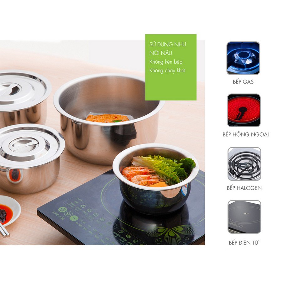 Nhà cửa & Đời sống > Dụng cụ nhà bếp > Nồi || [CHÍNH HÃNG] Bộ 5 nồi Inox có xửng - 14/18/22/26/30cm, kèm xửng hấp, nấu được bếp từ - Hàng thanh lý 99%Còn hàng