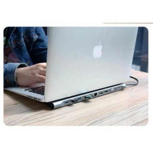Bộ Chia Hub Đa Năng 10 - 11 Cổng: USB 3.0 / Khe Cắm Thẻ Nhớ SD/TF / RJ45 / HDMI / VGA / Type-C / Jack 3.5mm Cho Macbook