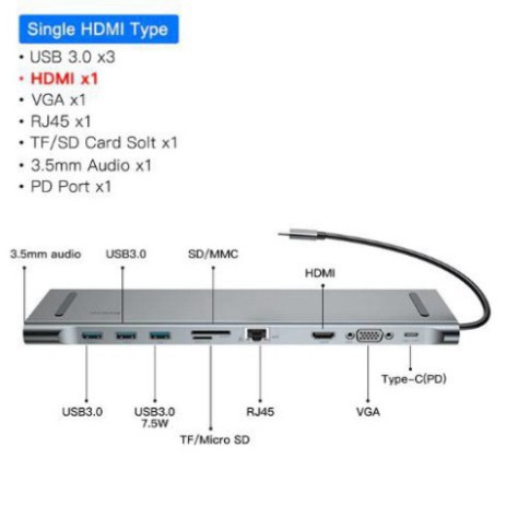 [CHÍNH HÃNG] Bộ Chia Hub Đa Năng 10 - 11 Cổng: USB 3.0 / Khe Cắm Thẻ Nhớ SD/TF / RJ45 / HDMI / VGA / Type-C / Jack 3.5mm