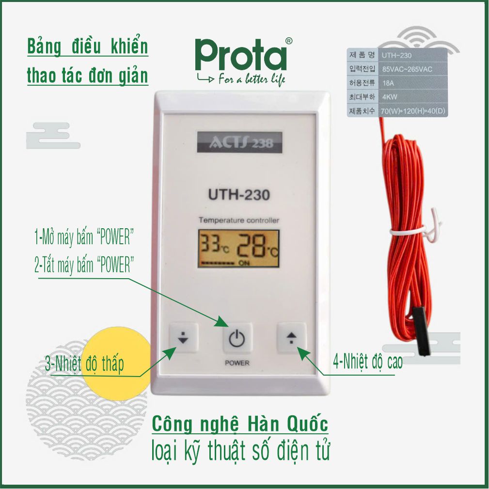 [CHÍNH HÃNG] Bộ điều khiển nhiệt độ UTH-230 – tự động cho máy xông hơi - Công nghệ Hàn Quốc