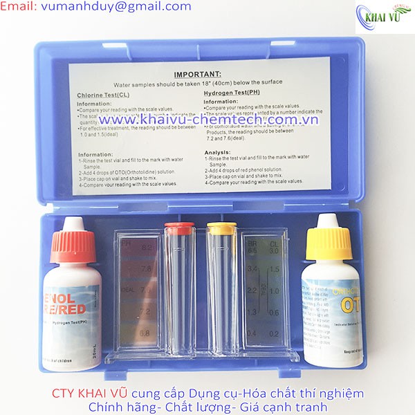 Công ty KHAI VŨ chuyên cung cấp Bộ dung dịch đo nồng độ Clo (Chlorin) và độ pH cho bể bơi (2 trong 1)