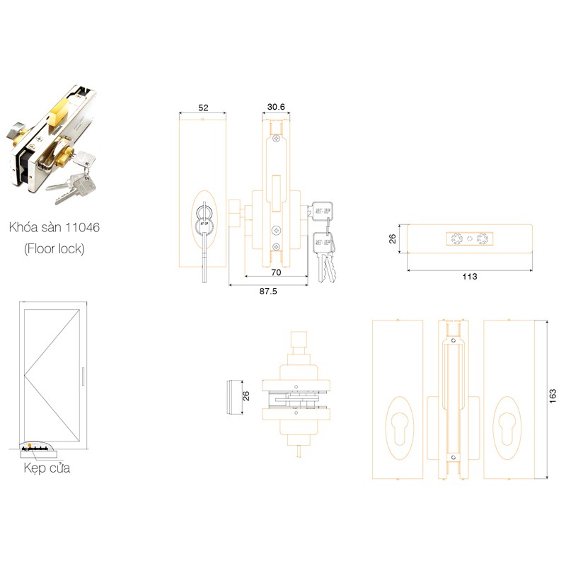 BỘ KHÓA SÀN KÍNH VIỆT TIỆP 11046[CHÍNH HÃNG] Bộ Khóa Sàn Cửa Kính VIỆT TIỆP 11046 Thân INOX 304 Lõi Đồng Thau Cao Cấp, Àn Toàn, Siêu Bền