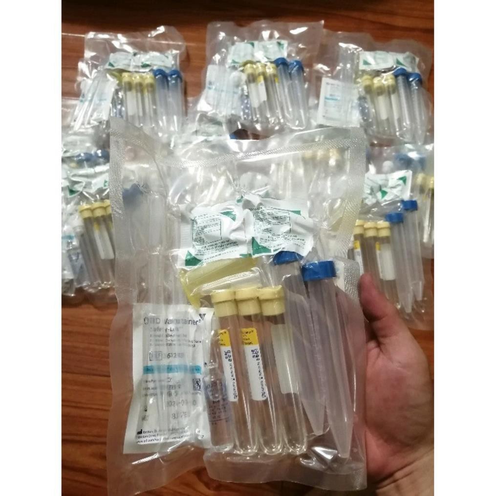 1. Dùng kim bướm lắp vào nắp rời và lấy máu đầu còn lại gắn vào ống ACD