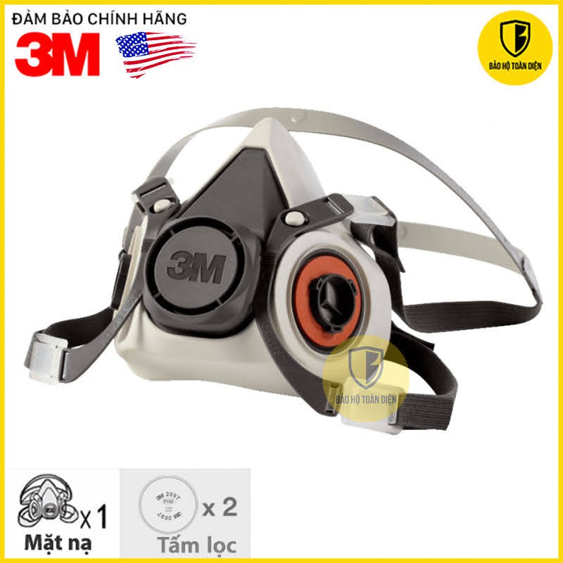 (CHÍNH HÃNG) Bộ mặt nạ phòng độc 3M 6200 kèm tấm lọc bụi, hơi dầu, khói hàn, hơi hữu cơ 3M 2097