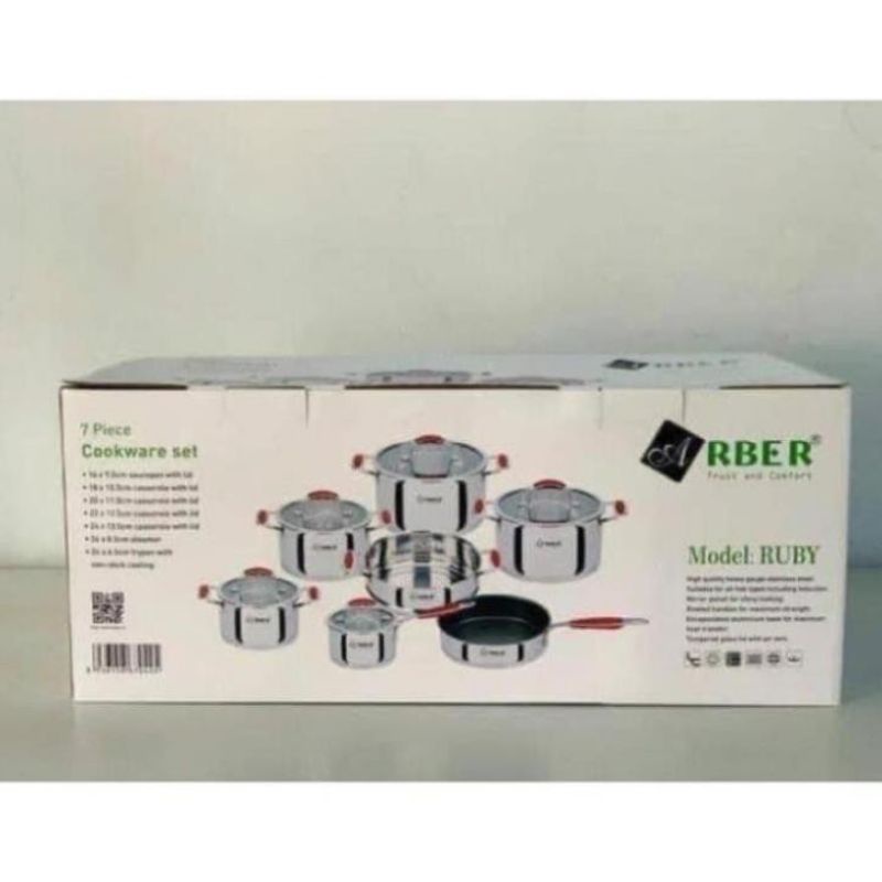 Giới thiệu [CHÍNH HÃNG] Bộ Nồi Từ Cao Cấp Arber RUBY 7 Món Inox 304