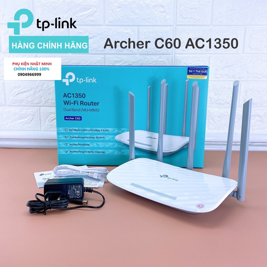 [CHÍNH HÃNG] Bộ phát Wi-Fi TP-Link Archer C60 AC1350 - wifi 5 râu chuẩn AC mới nhất cho thiết bị ko dây