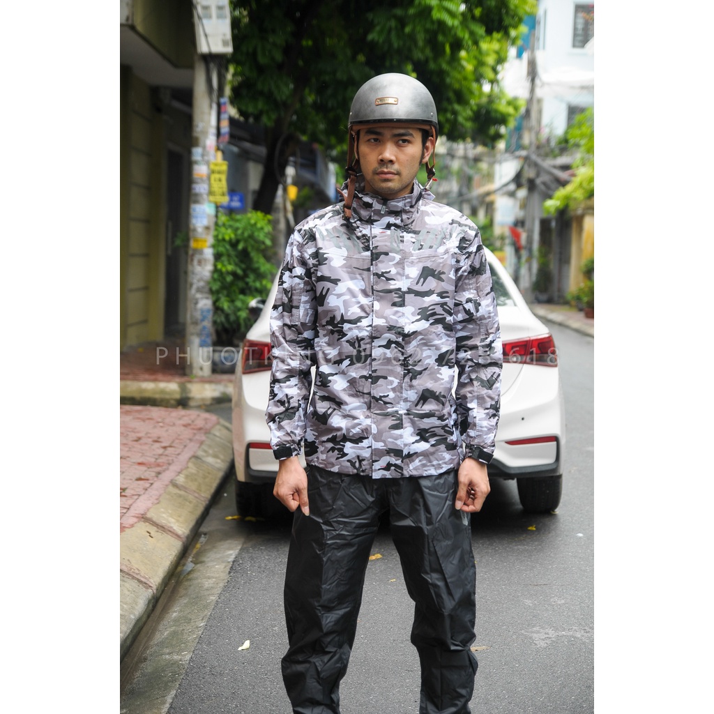 ÁO MƯA BỘ GIVI CAMO01Phia trước ngực áo có túi nhỏ chống nước để được những vật dụng quan trọng như ví tiền, điện thoại,giấy tờ…khi cần lấy ra sẽ không cần phải cởi áo.