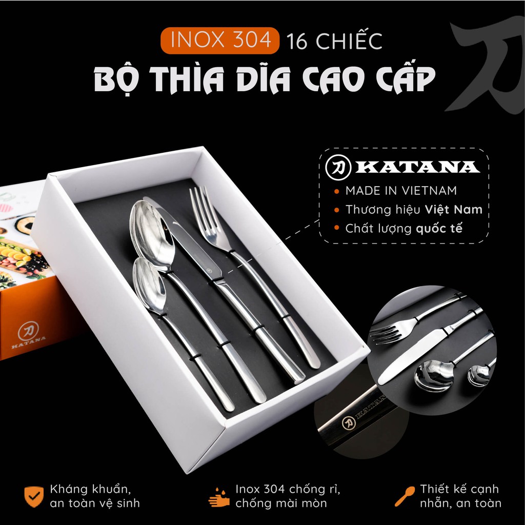 Bộ thìa dĩa bàn ăn cao cấp �XUẤT KHẨU Made in Việt Nam - Thìa trà - Thìa súp - Dĩa ăn - Set bàn ăn 4 và 16Dao Nhật Katana - Chuyên dao Nhật chính hãng