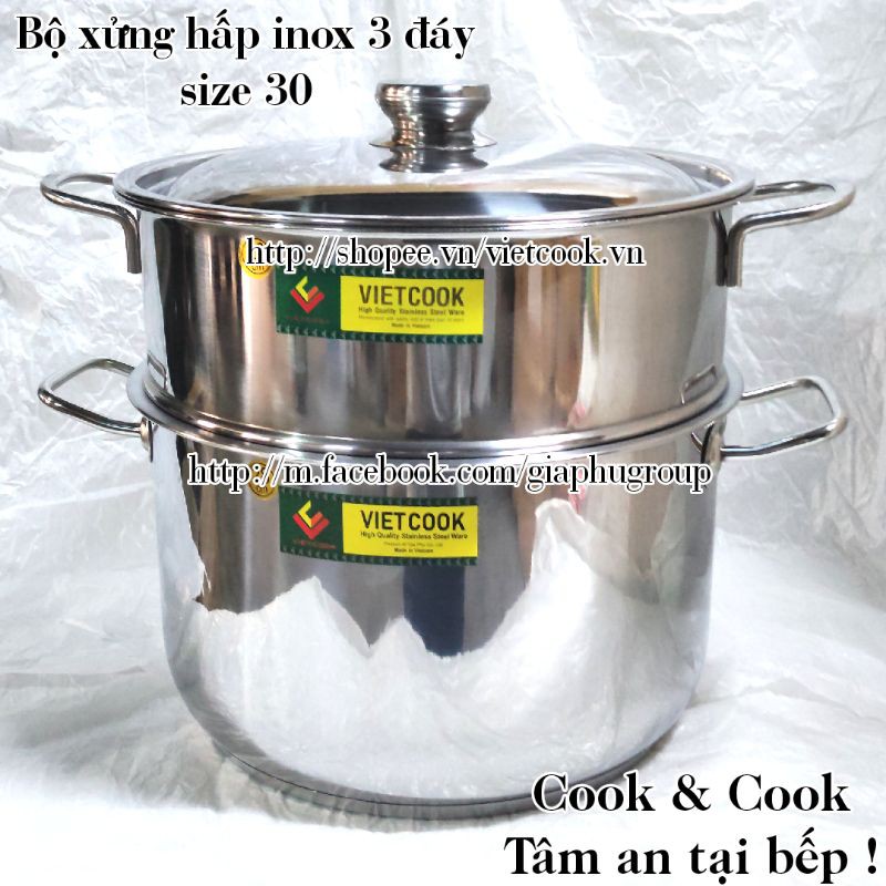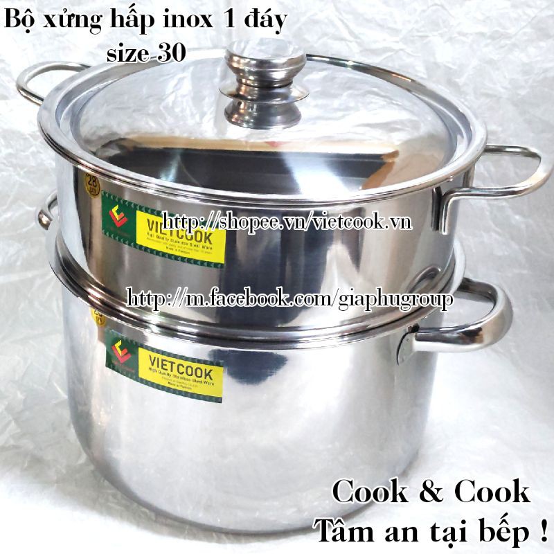 Nhà cửa & Đời sống > Dụng cụ nhà bếp > Nồi || [CHÍNH HÃNG] Bộ xửng hấp inox size 30 Vietcook (nồi 13 lít) đáy từ, Chõ hấp, đồ xôi inox 5 đến 7 kg gạoCòn hàng