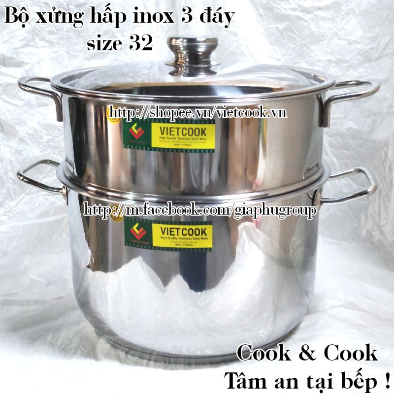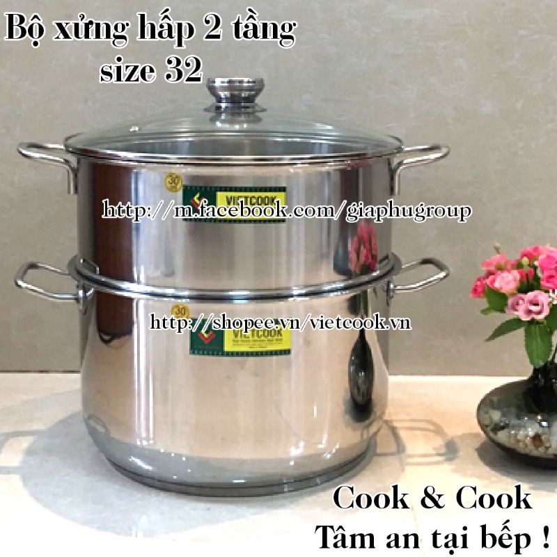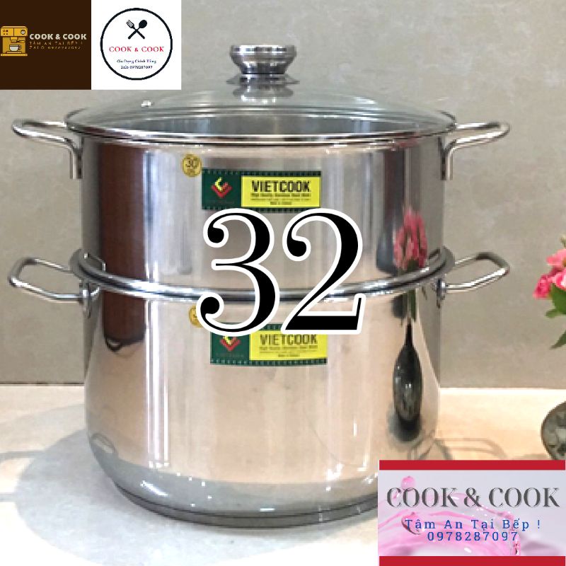 [CHÍNH HÃNG] Bộ xửng hấp inox size 32 Vietcook (nồi 15 lít) đáy từ, Chõ hấp, đồ xôi inox 6 đến 8 kg gạo.