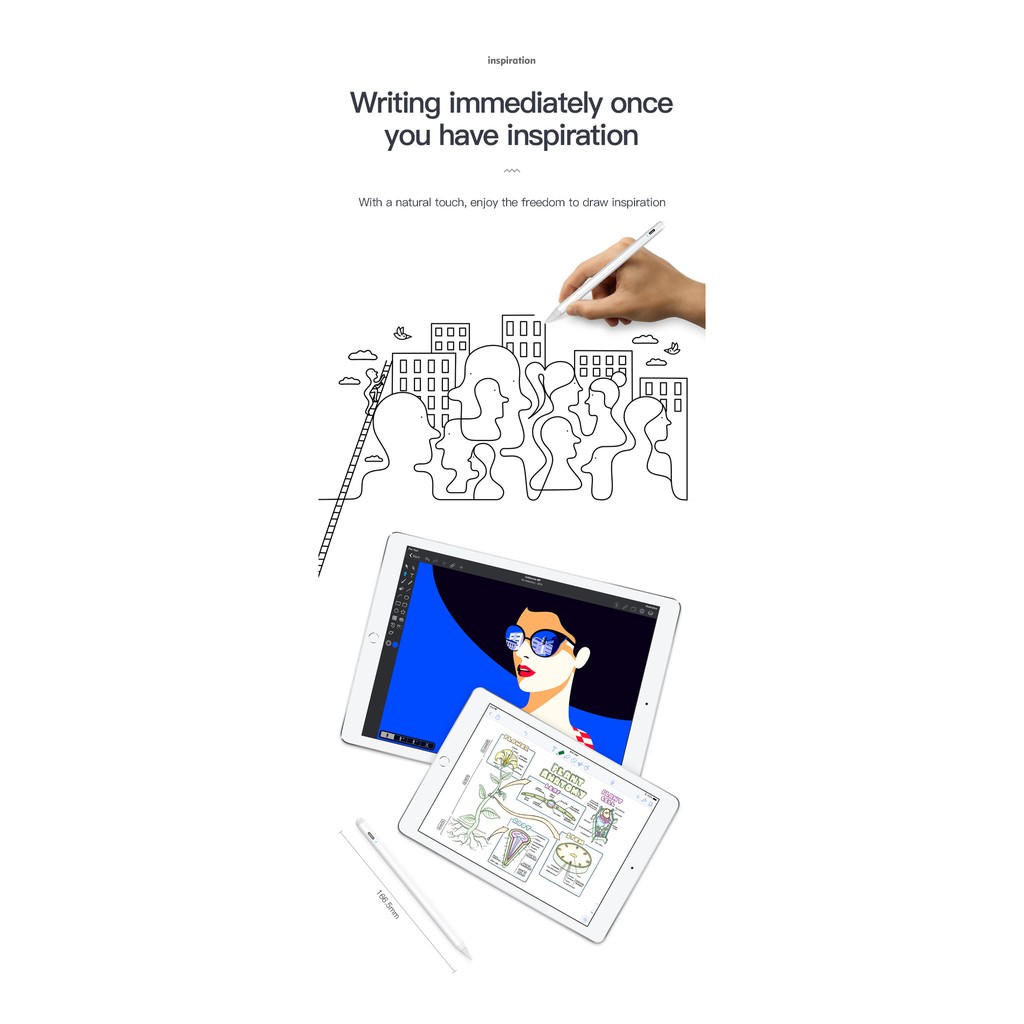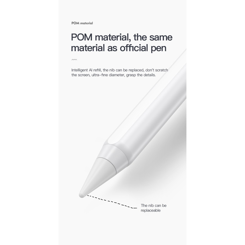- Kích thước nhỏ gọn được mô phỏng theo chiếc Apple Pencil 2 , ngòi bút bọc silicone viết dễ dàng không gây cảm giác bị trượt trên bề mặt , nét bút nhỏ viết vẽ chính xác hơn