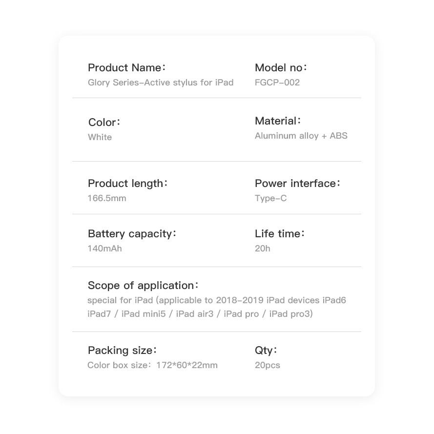 - Tương thích : Apple IPad Air 3 /10.5 inch . Gen 6 / New IPad 9.7 inch 2018 . Gen 7 2019 / 10.2 inch . IPad Pro 11 inch 2018/ 2020 . IPad Pro 12.9 2018 / 2020 . IPad mini 5