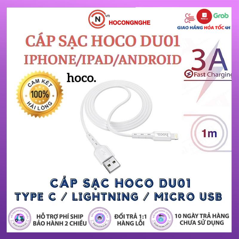 CHÍNH HÃNG Cáp sạc và truyền dữ liệu Hoco DU01 USB to Micro/Lightning/Type-C sạc nhanh 2.4A/3A dài 100cm - CCN