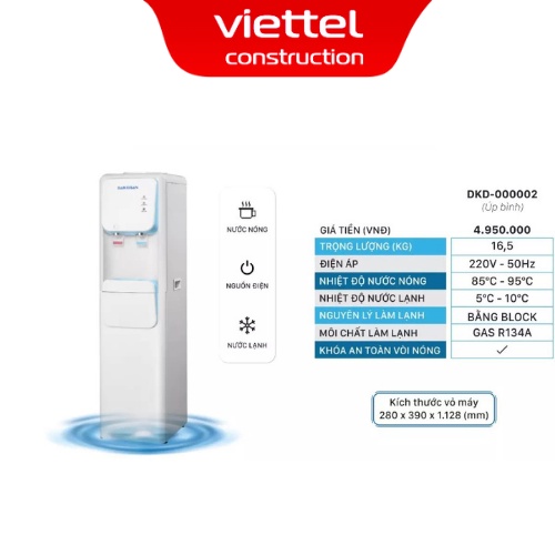 - Cây nước nóng lạnh Daikiosan DKD-000002 là loại thông dụng, lấy nguồn nước trực tiếp bằng phương pháp úp bình thông dụng.