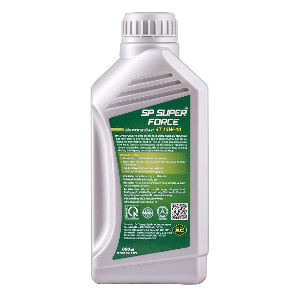 SP SUPER FORCE 4T SG 20W-50 được chế tạo theo CÔNG NGHỆ 3S-MULTI đặc biệt ngăn chặn sự tiêu hao dầu, bảo vệ chống trượt ly hợp tối ưu, chống mài mòn vượt trội động cơ - hộp số - ly hợp giúp động cơ vận hành êm ái, làm sạch chủ động giúp loại bỏ hoàn toàn cặn bám và kéo dài thời gian bảo dưỡng gấp 2 lần so với các loại dầu động cơ thông thường.