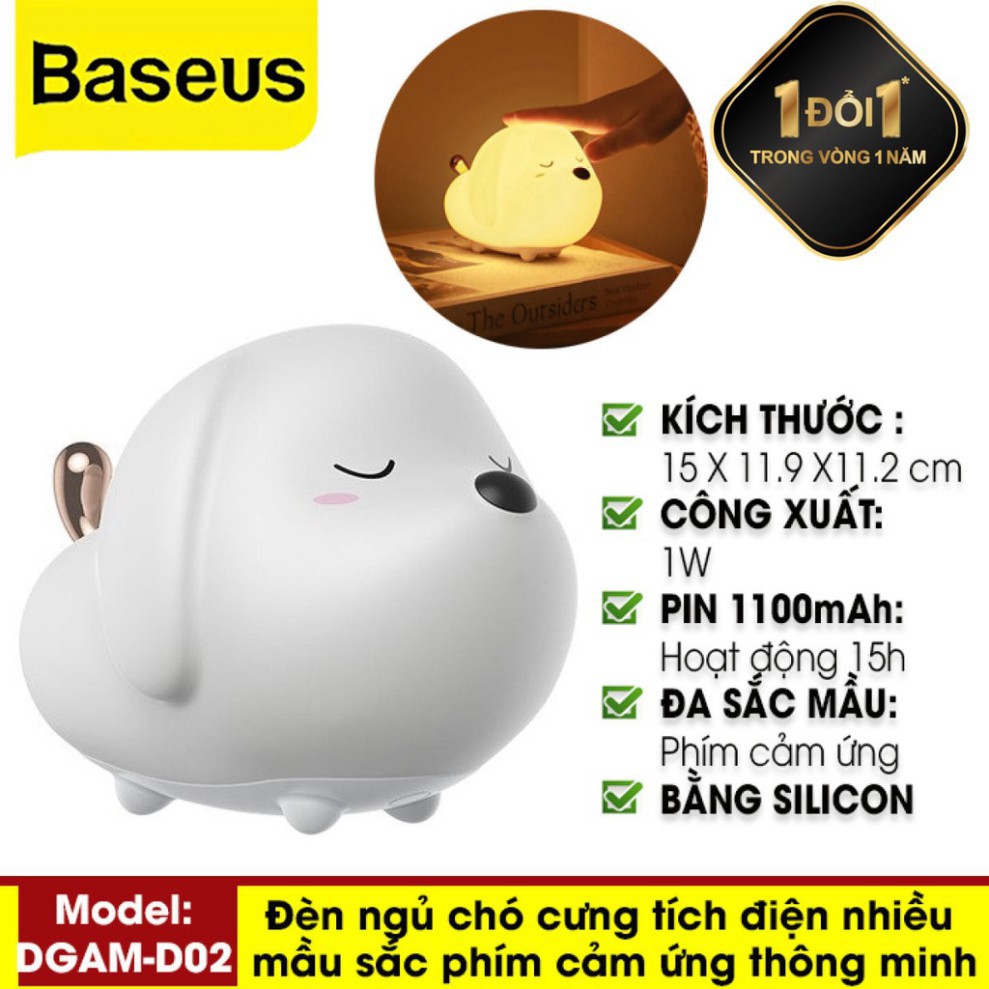 TÍNH NĂNG CƠ BẢN Đèn ngủ cảm ứng đổi màu thông minh Baseus Cute Series Doggie Silicone Night Light (1100mAh re-Charge battery, Touch, RGB Light Mode )