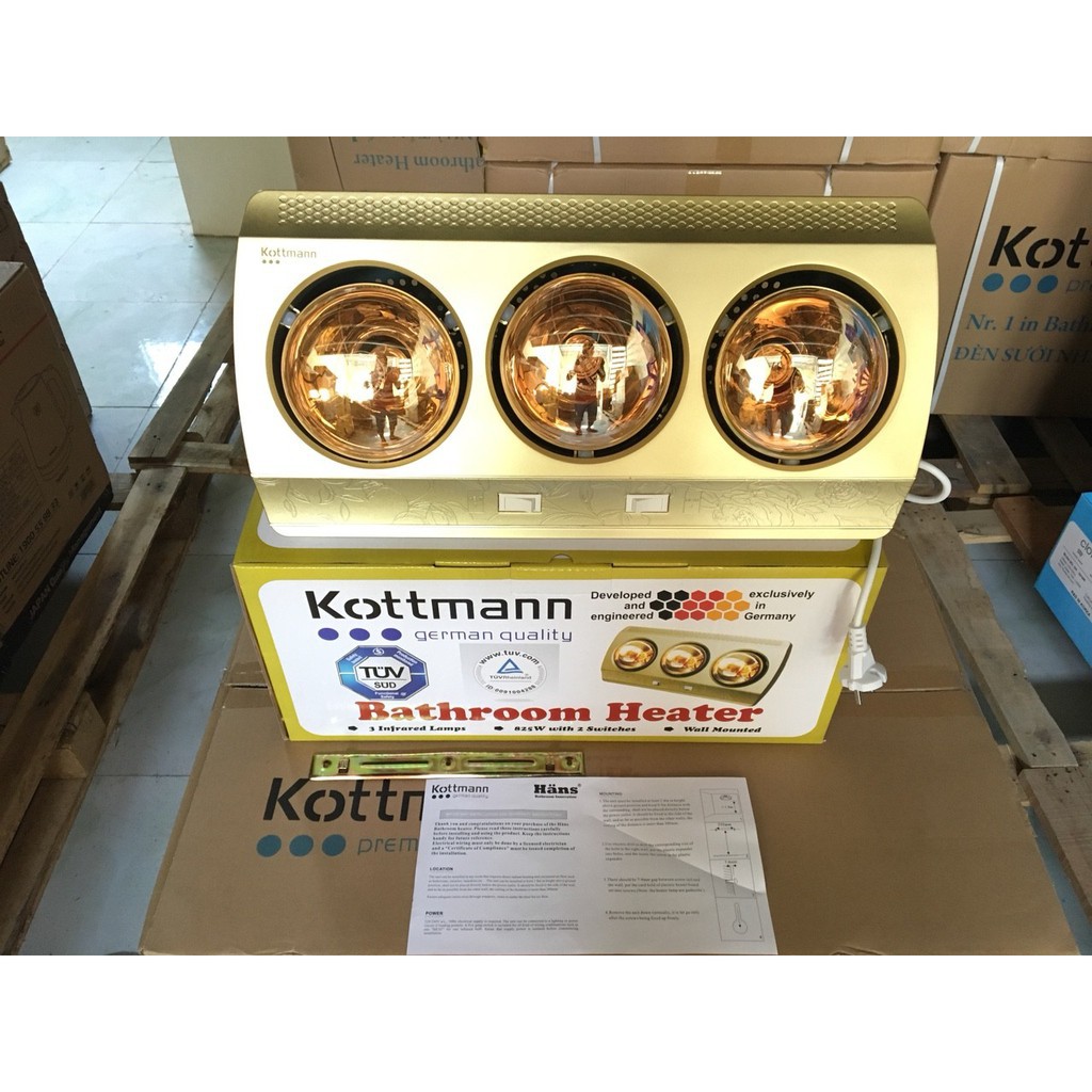 Thiết Bị Điện Gia Dụng > Thiết bị điện gia dụng lớn > Máy sưởi || {CHÍNH HÃNG} Đèn sưởi nhà tắm đèn sưởi hồng ngoại Kohn Plus Model KP03G 3 bóng vàng chống chói công tắc riêngCòn hàng