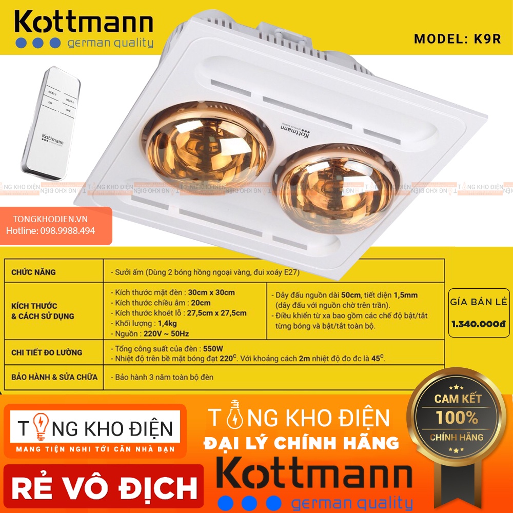 [CHÍNH HÃNG] Đèn sưởi nhà tắm Kottmann 2 Bóng Âm Trần Hồng Ngoại K9R/K9S