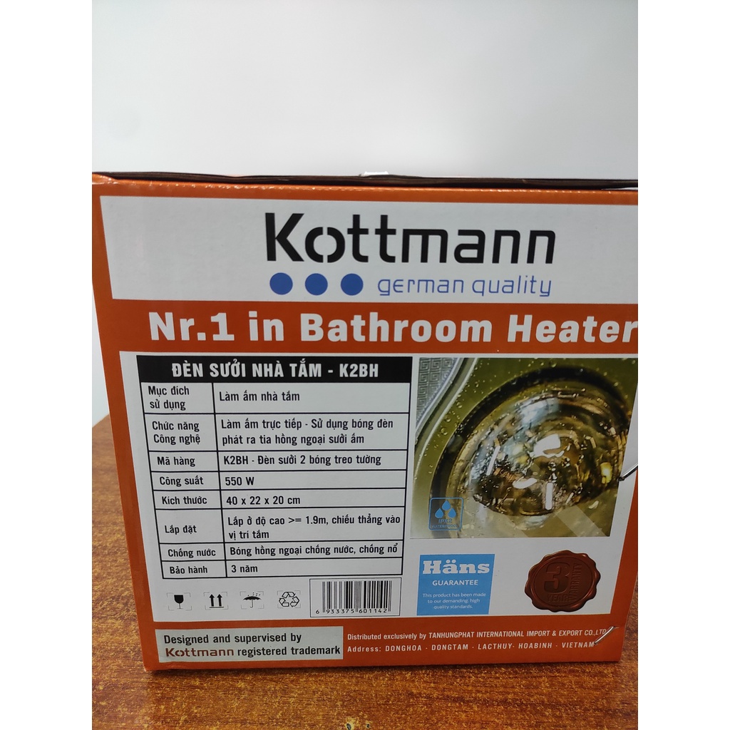 Giới thiệu [CHÍNH HÃNG] ĐÈN SƯỞI NHÀ TẮM KOTTMANN BẢO HÀNH 3 NĂM