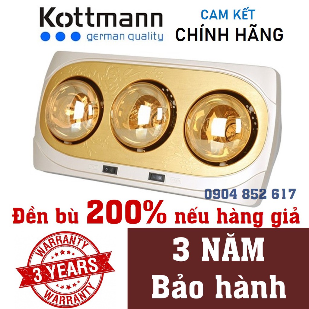 [CHÍNH HÃNG] ĐÈN SƯỞI NHÀ TẮM HỒNG NGOẠI KOTTMANN 3 BÓNG MẠ VÀNG K3B-H