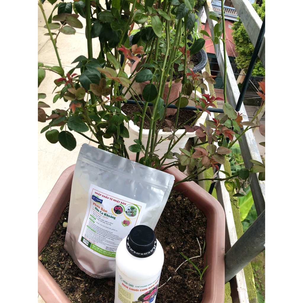 Dịch chuối kết hợp bón phân Nhật, vừa bổ sung dinh dưỡng và vi lượng cho cây, giúp cây sai hoa, màu thắm, bông to lâu tàn.