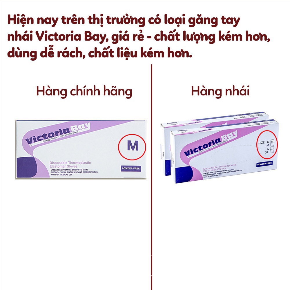 [CHÍNH HÃNG] Găng tay Victoria Bay chất liệu TPE siêu dai Găng tay cao su rửa bát nấu ăn vệ sinh không bột hộp 100 cáiHiện trên thị trường có loại nhái găng tay Victoria Bay giá rẻ hơn chất lượng kém hơn rất nhiều, rất dễ rách quý khách lưu ý những sản phẩm giá rẻ này trước khi mua nha !