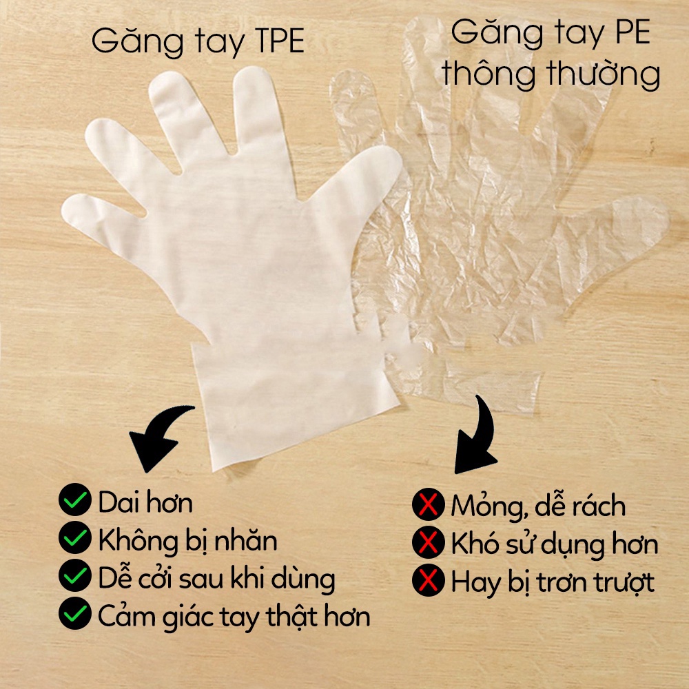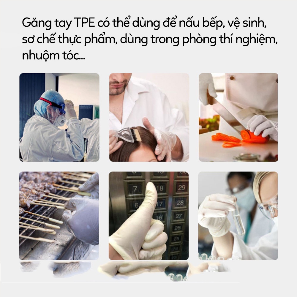 - Chất liệu: TPE cao cấp ( ThermoPlastic Elastomer Gloves)